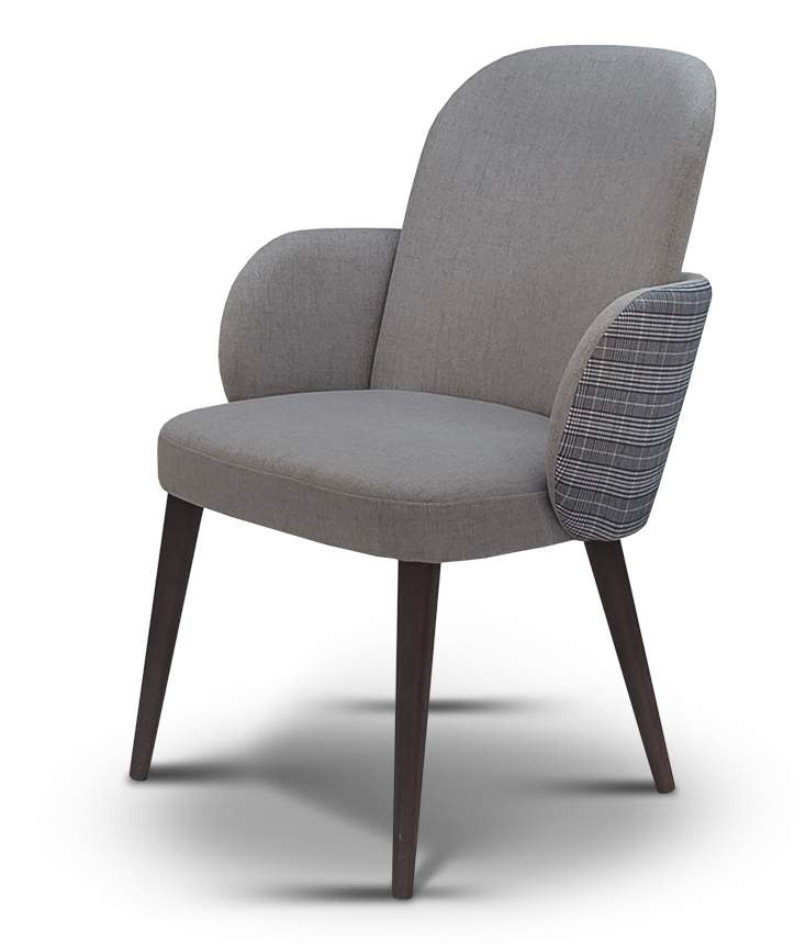 Необычное дизайнерское полукресло для ресторана и кафе. Изюминка этой модели гнутые элементы овальной формы из которых формируется спинка и подлокотники. Технически очень сложное решение, для реализации требуется 5-ти координатный станок, с помощью которого вырезаются точные детали спинки и подлокотников. Ножки в стиле 60-х отлично дополняют этот дизайн. Возможны любые варианты отделки и обивки.