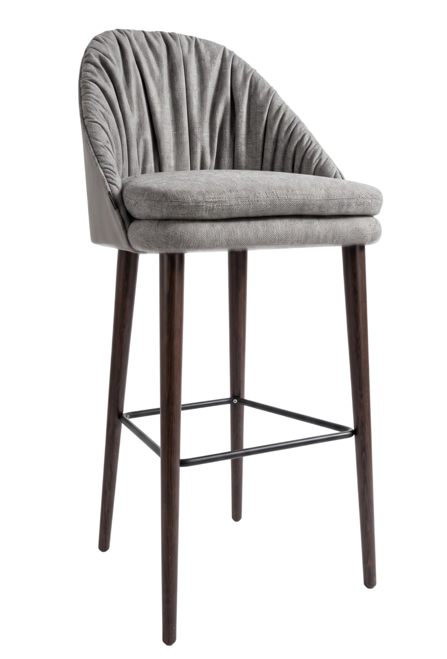 Обволакивающая спинка с аккуратной продольной драпировкой и мягким сиденьем из высокоплотного поролона обеспечивает анатомически грамотную посадку, а тонкие конические ножки из массива дерева придают изделию легкость и визуальную элегантность.