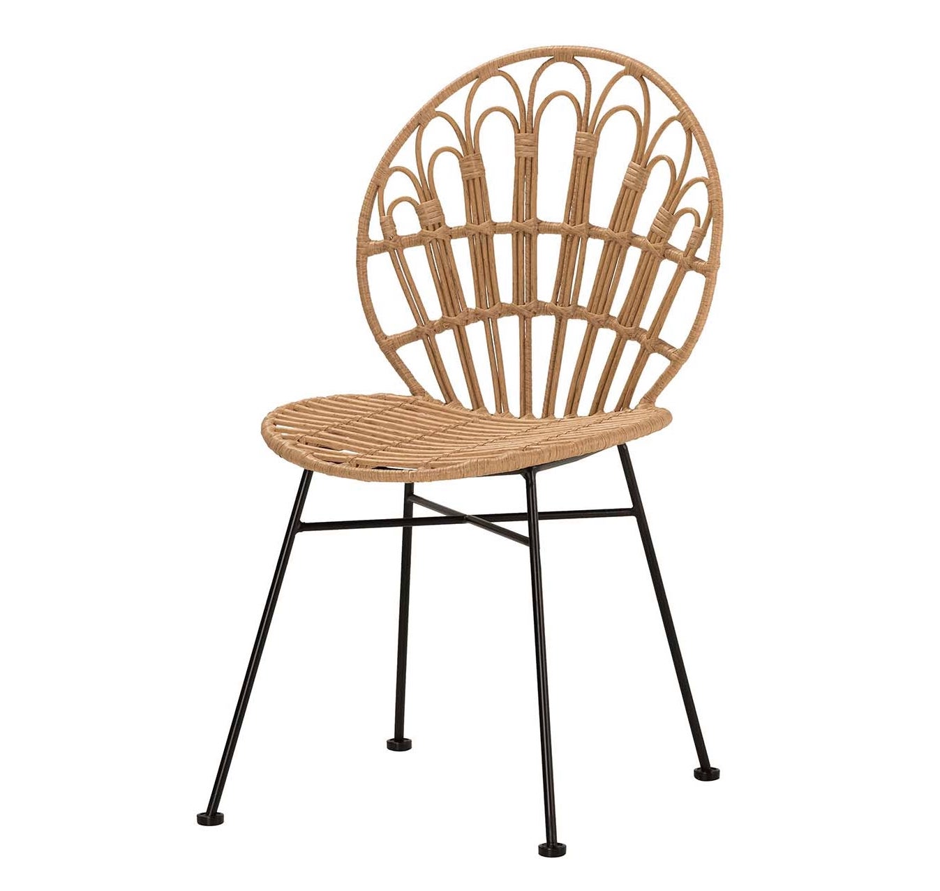 Стул Шарлотте ("Charlotte")— это воплощение лёгкости и изящества для сегмента HoReCa. Оригинальная спинка с художественным плетением из искусственного ротанга напоминает утончённый орнамент, создавая эффект воздушности и визуального простора. Мягкий природный оттенок плетения гармонирует с лаконичными чёрными ножками из прочной стали, подчёркивая современный и свежий характер модели.