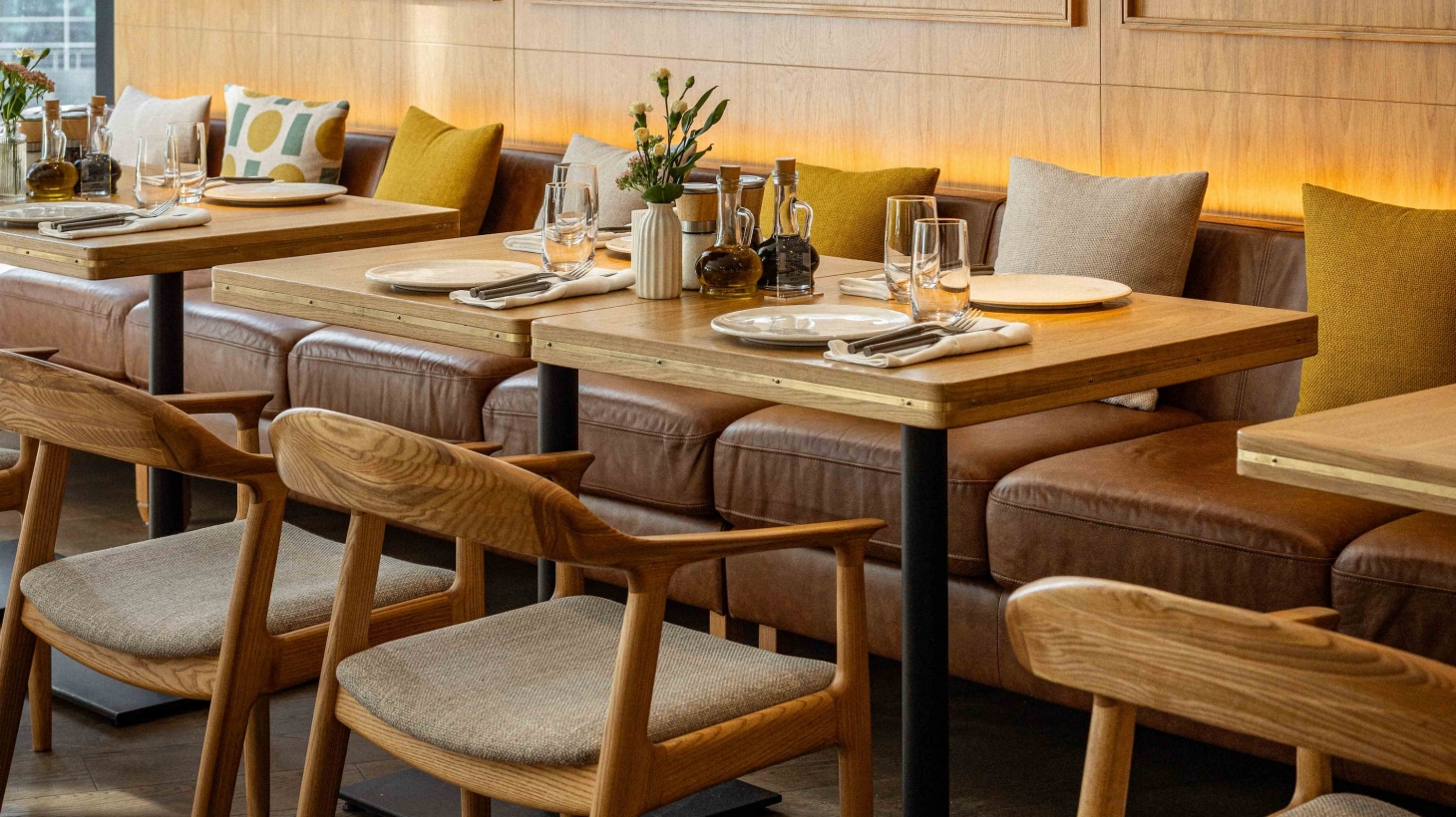 Дизайн ресторана Сыроварня выдержанный в теплых тонах натурального дерева и мягких обивок, призван подарить своим гостям ощущение домашнего комфорта.